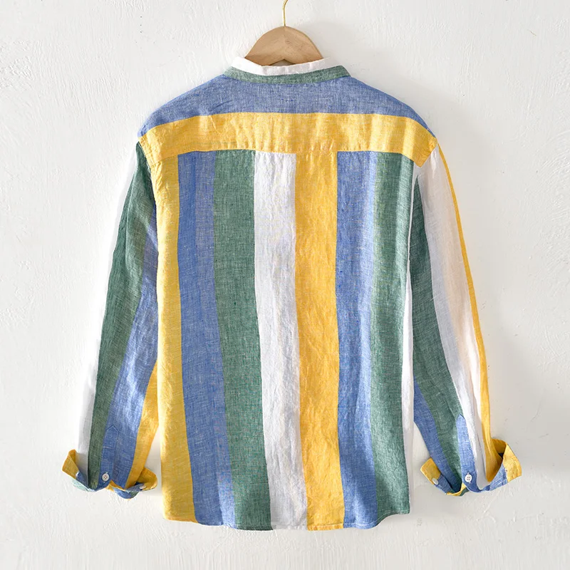 New Designer Long-sleeve Casual Striped Pure Linen Brand Shirts For Men Trend Comfortable Tops Clothing Shirt Men Plus Size Chest 120CM Camisa Masculina Chemise Homme Camisas De Hombre Ropa Hombre Fast Drop Shipping
