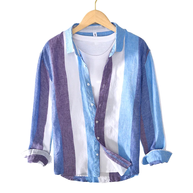 New Designer Long-sleeve Casual Striped Linen Brand Shirts For Men Trend Comfortable Tops Clothing Plus Size Camisa Masculina
