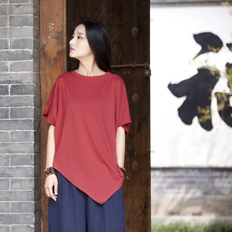 2019 Spring and summer women t-shirt retro bat-type t shirt girls casual fashion round neck t shirts female camisa chemise