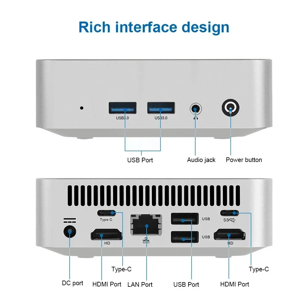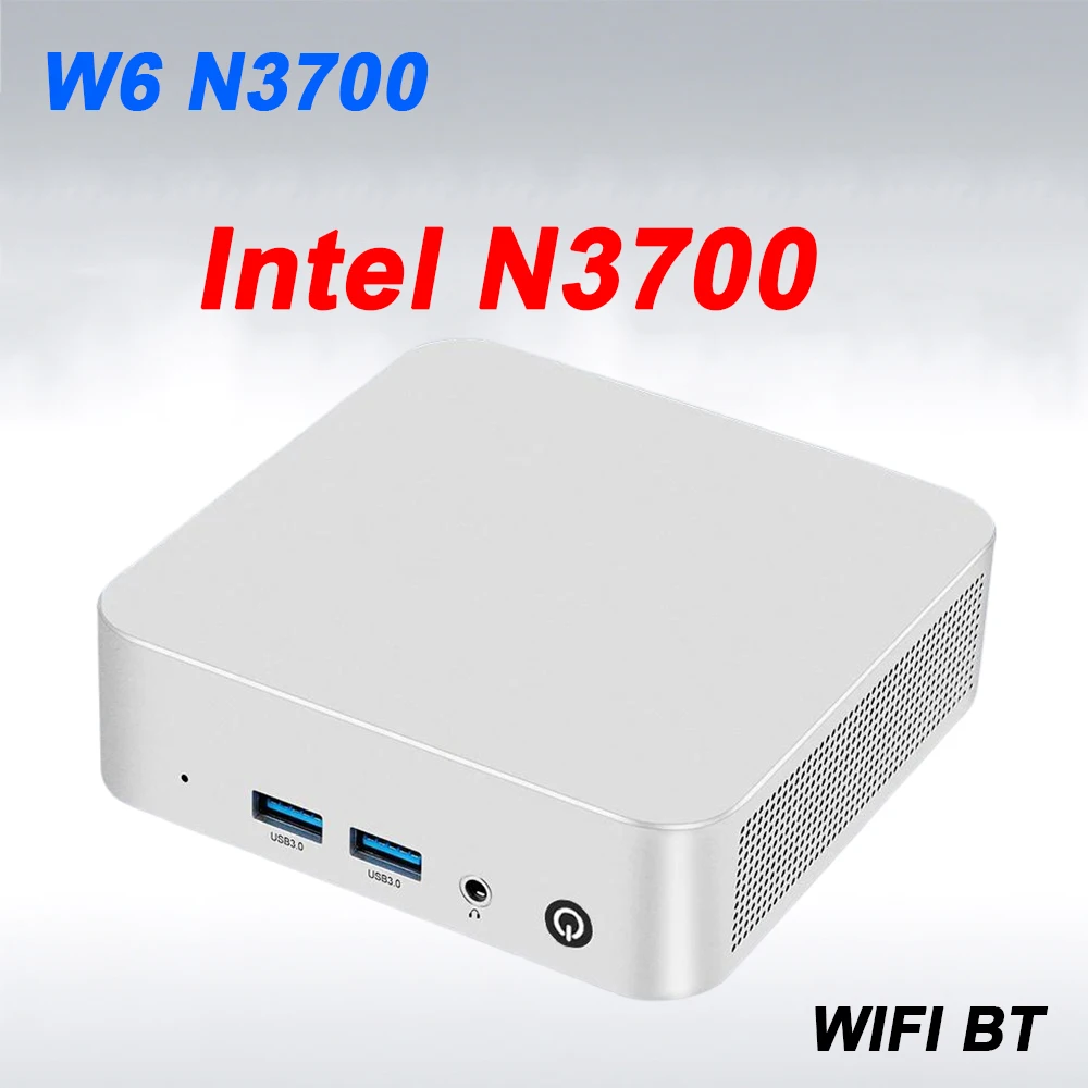 W6 N3700 Intel N3700 Mini PC Windows 10 DDR3 8GB 128GB SATA SSD Wifi BT Lan Pocket Office Mini PC Computer Type-C 4K 60Hz