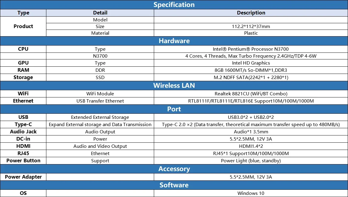 Sé el primero en valorar “W6 N3700 Intel N3700 Mini PC Windows 10 DDR3 8GB 128GB SATA SSD Wifi BT Lan Pocket Office Mini PC Computer Type-C 4K 60Hz”